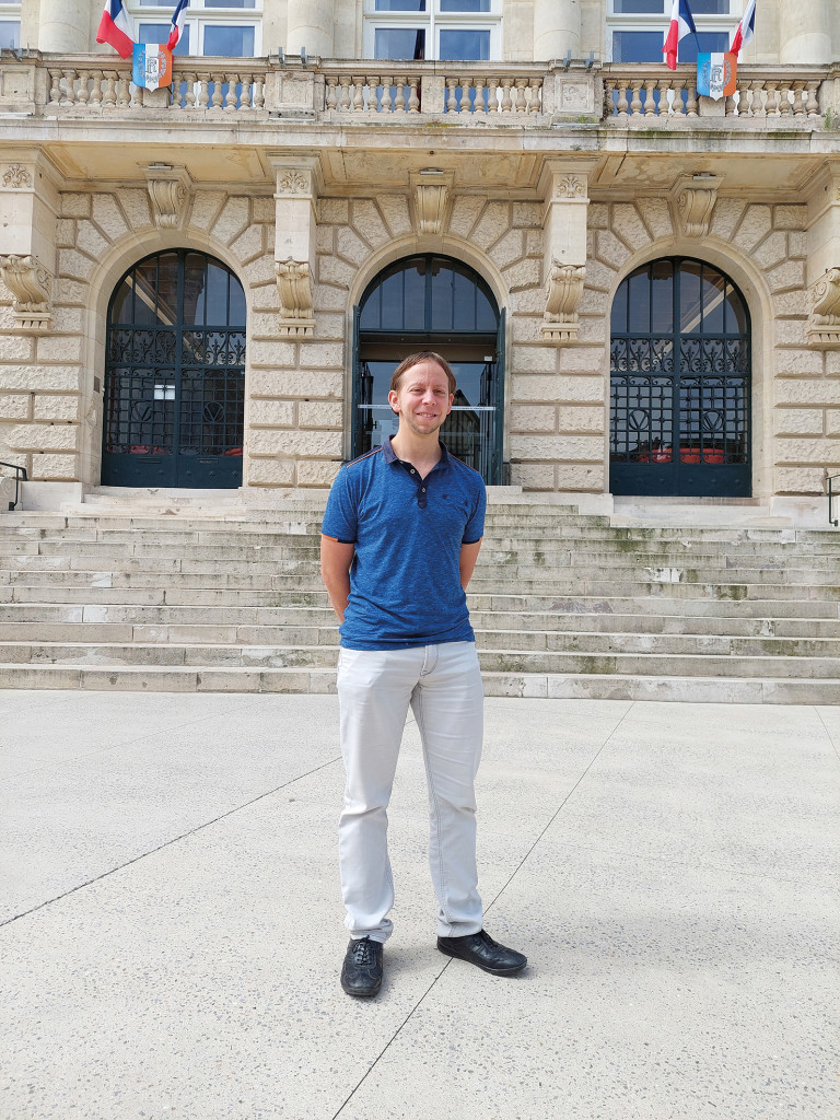 J’ai découvert le handball quand j’étais tout petit. J’ai arrêté lors de mes études, avant de revenir ici et ça fait 15 ans que je joue au SMV. J’y suis aussi bénévole depuis presque 10 ans : j’accompagne les équipes à l’extérieur, je fais les tables de marque, j’aide à la buvette, etc. C’est un peu comme une famille. Cet esprit de camaraderie m’a toujours plu. J’ai toujours aimé le sport, j’ai toujours regardé les JO et les grandes compétitions à la télé, donc c’était la suite logique d’être bénévole pour Paris 2024. J’avais vraiment envie d’y être. J’ai pas mal stressé parce que j’ai été pris dans les derniers jours avant la clôture ! Quand la réponse est arrivée, j’étais très fier.