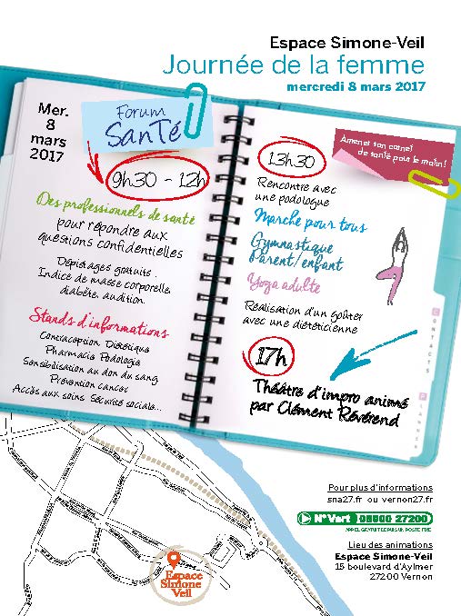 À l’occasion de la journée internationale des droits de la femme, un forum santé est organisé. Bien-être, diététique, conseils médicaux, sport et même une animation théâtrale sont au programme de cette journée spéciale. N’hésitez pas, la plupart des activités sont gratuites !