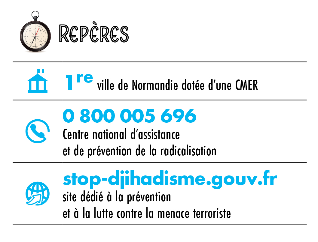 Ce dispositif, placé sous l’autorité du maire, du préfet et du parquet, s’inscrit dans la continuité de notre action entreprise dès 2014 avec, notamment, la mise en place du conseil local de sécurité et de prévention de la délinquance (CLSPD). Un outil qui a été qualifié d’exemplaire par la procureure de la République d’Evreux. Avec la CMER, notre politique de prévention de la délinquance s’enrichit d’un nouvel outil. En formant les agents sur le terrain, nous serons à même de détecter les signes avant-coureurs de la radicalisation.