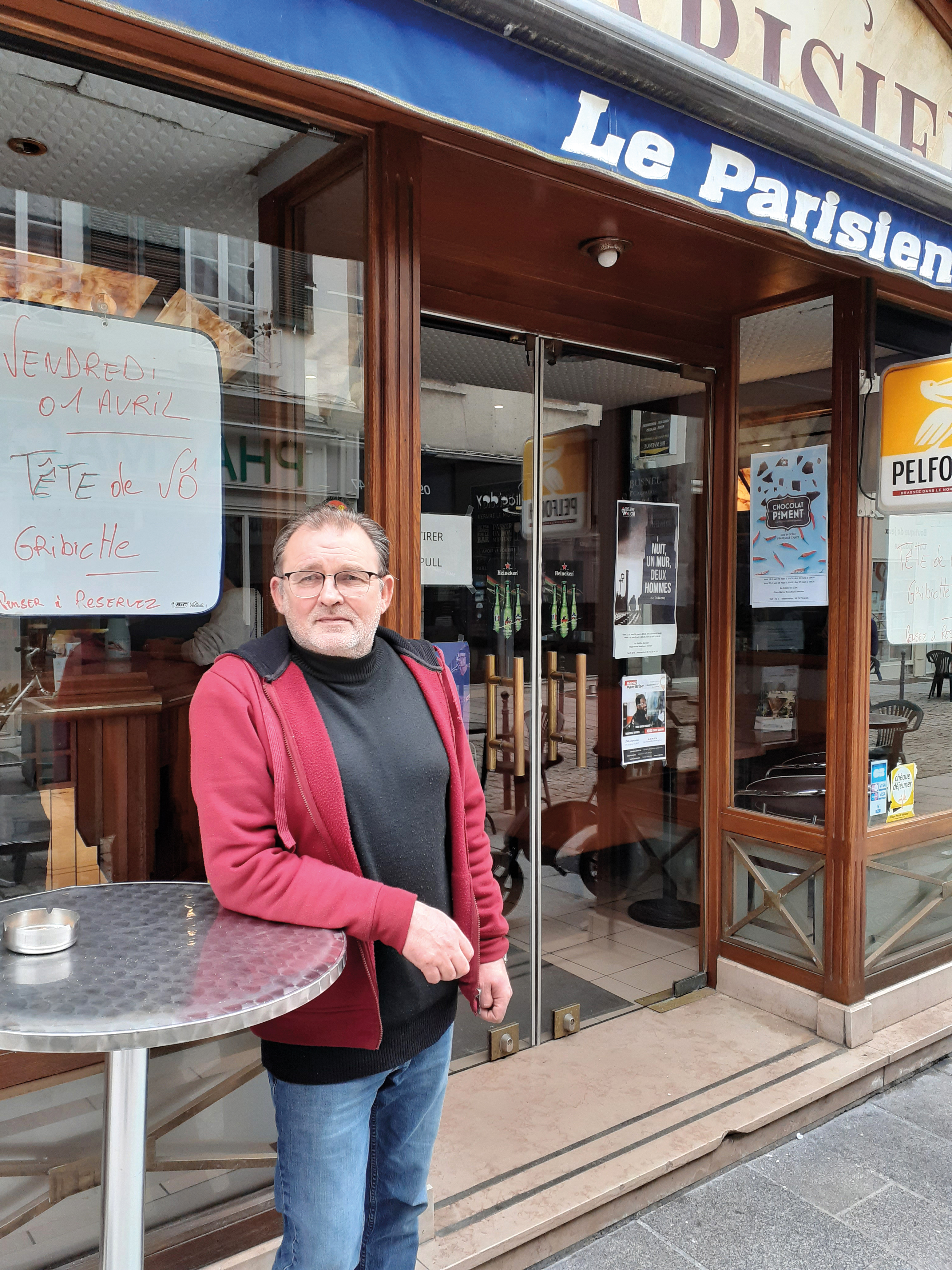 Oui, je connais tout le monde et tout le monde me connaît. C’est une petite ville, beaucoup de gens dans la rue m’appellent même « le maire », c’est un peu ma rue à moi ! C’est une belle petite ville, où plein de choses se font. Avec l’accord de la mairie, je peux m’étaler un peu plus dans la rue, je profite du fait qu’on ne peut pas passer en voiture. Ça me permet de mettre 35-40 places dehors. D’ailleurs, j’ai recommandé une terrasse toute neuve pour cette année. J’organise des concerts le dimanche après-midi pendant l’été, c’est bon enfant, les gens sont contents, des fois ils dansent un peu. On est bien à Vernon, et je suis bien dans ma rue !