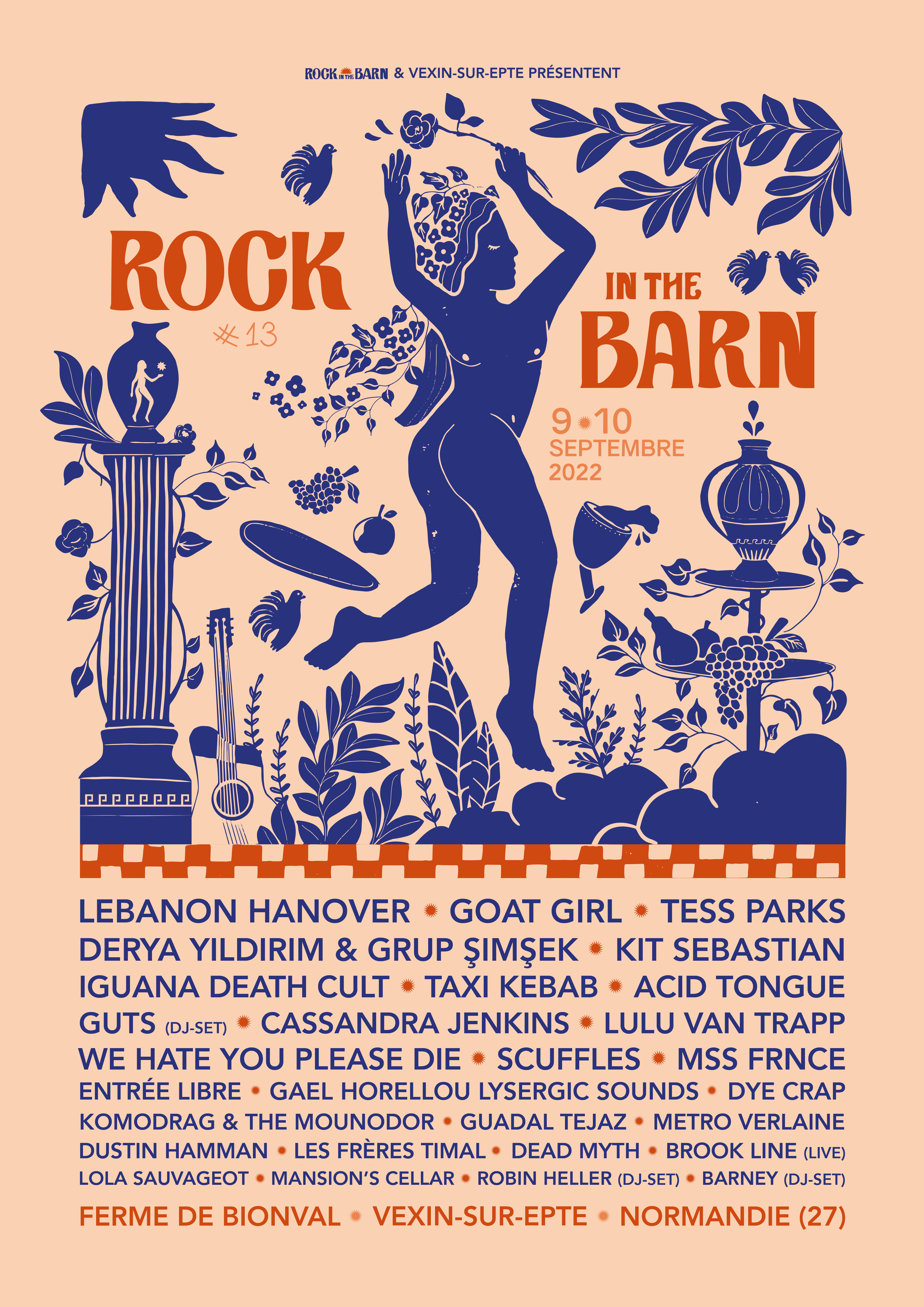 Enfin un retour à la normale. En mieux, sûrement, tant le festival Rock in the Barn nous surprend à chaque nouvelle édition. Et pour la première sans COVID depuis 2020, tous les ingrédients sont à nouveau réunis : la bucolique ferme de Bionval, à 10 km de Vernon, de la nourriture et des bières locales et, bien sûr, une programmation concoctée par cette équipe de passionnés. « La recette reste la même », sourit Martin Carrière, co-fondateur du festival, « les concerts mêlent des découvertes régionales ou internationales et des pépites de la scène rock indépendante. » Mais pas que, car, depuis plusieurs années, le festival repousse les frontières des styles en invitant DJs, musiciens d’électro et autres chanteurs folk. Avec l’éclectisme comme dénominateur commun. Parmi les têtes d’affiche de cette 13e édition, Lebanon Hanover, groupe emblématique du renouveau cold-wave, Goat Girl, nouvelle sensation post-punk londonienne, ou bien Tess Parks dont le rock psyché s’est affuté lors de ses nombreuses collaborations avec Anton Newcombe (The Brian Jonestown Massacre). A ne pas louper également Derya Yildirim & Grup Simsek, des musiciens venus des quatre coins d’Europe qui revisitent le folklore turc façon psychédélique, et Taxi Kebab, fusion techno-berbère récemment signée sur le label de Peter Gabriel.
