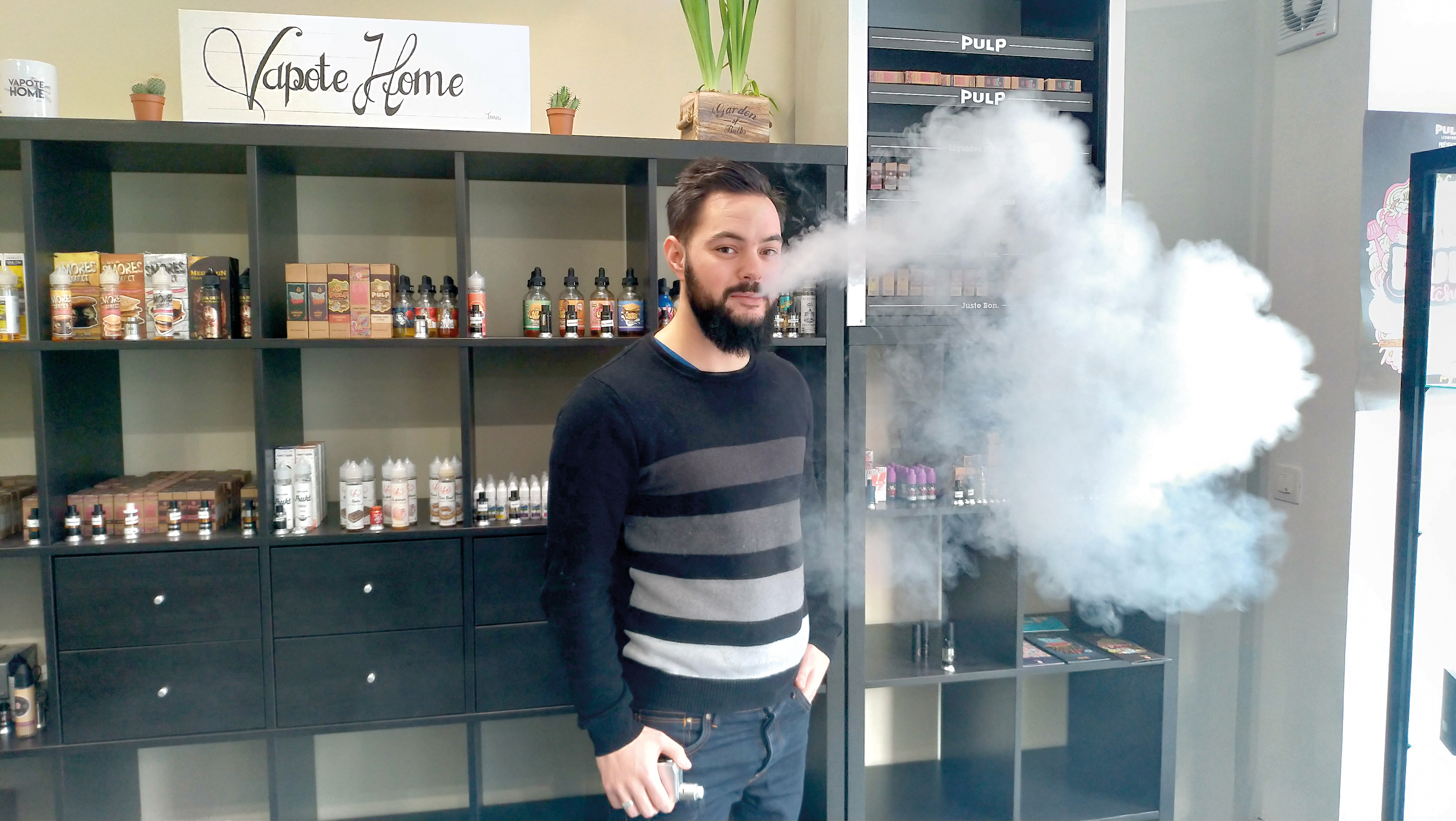 Quand on entre dans la boutique flambant neuve de Ludovic Beaufremez, un épais nuage de fumée nous enveloppe. Mais, surprise, celle-là ne pique ni la gorge ni les yeux et sent plus le bonbon que le tabac brun. Il s’agit en effet de la vapeur des cigarettes électroniques que le jeune homme, originaire de Pressagny-l’Orgueilleux, propose à la vente. Lui-même « vapote », depuis 4 ans, date à laquelle il a décidé d’arrêter le tabac. Le produit lui a tellement plu qu’après plusieurs expériences de vendeur, il se lance dans le commerce des e-cigarettes dans une boutique à Saint-Marcel. Décidant de se relocaliser à Vernon, il déménage son activité en ouvrant Vapote Home le 15 décembre dernier.