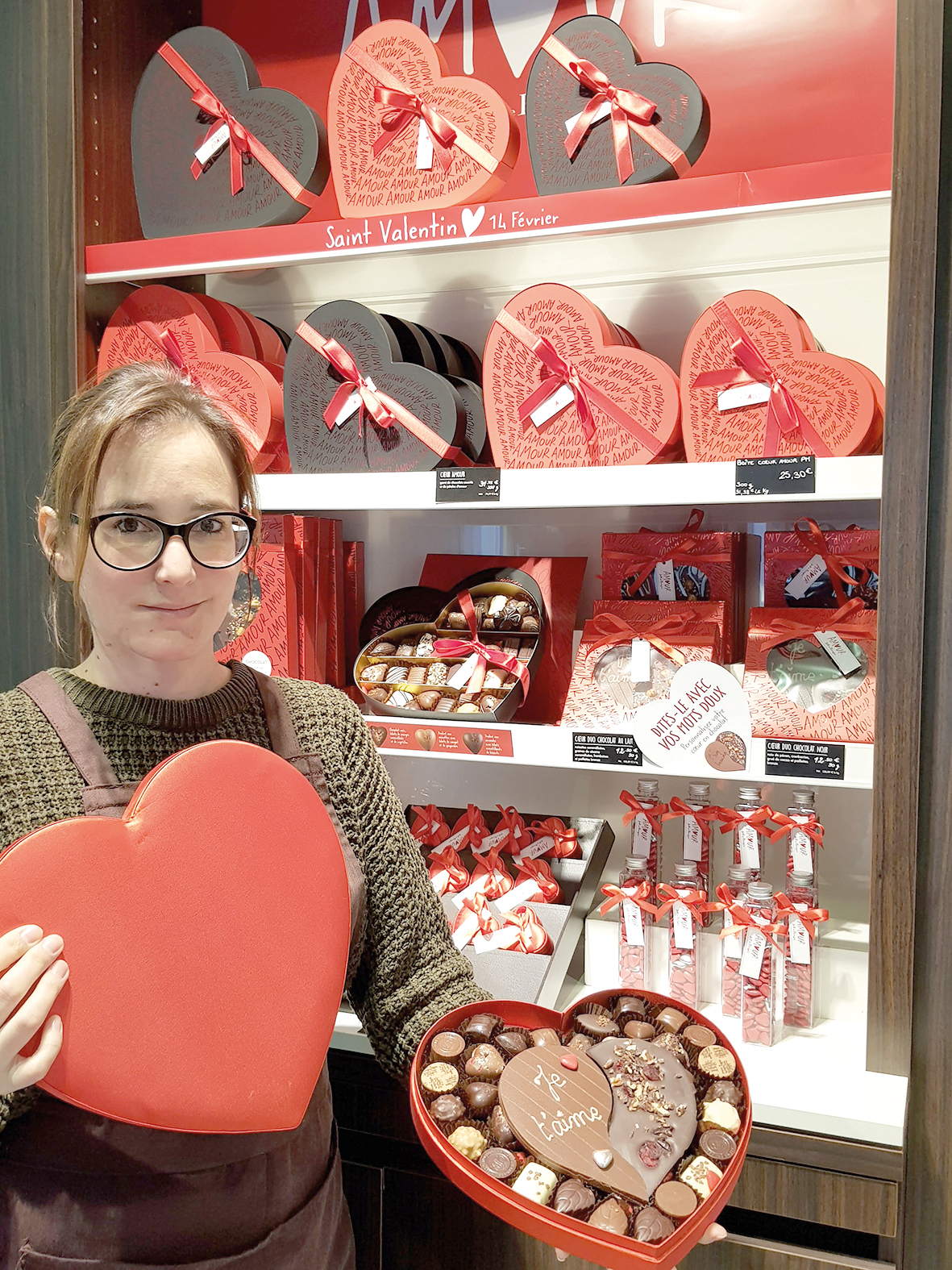 Les boites de chocolat en forme de coeur (oui, comme dans les comédies romantiques) reviennent à la mode ! Vous trouverez différents assortiments, de 20 à 55€. Sinon, il y a le coeur en chocolat sur lequel vous pouvez faire glacer le nom de votre moitié (12€50, sans réservation).