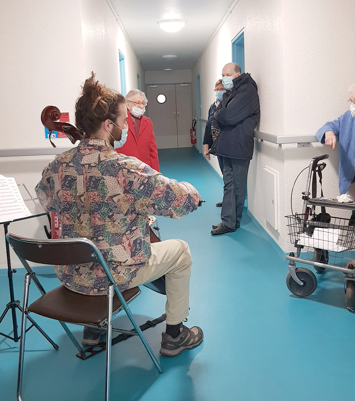 Le 23 décembre, les seniors de la Résidence Autonomie Bully ont eu une belle surprise. Camille Libermann, violoncelliste et petit-fils d’un des résidents, leur a donné un concert dans les couloirs. Les habitants y ont assisté sur le pas de leur porte, dans le respect des gestes barrières. Au programme : musique classique, chants de Noël et airs populaires. « J’aime apporter la musique là où on ne l’attend pas, elle fait du bien à l’âme », souligne le jeune musicien.