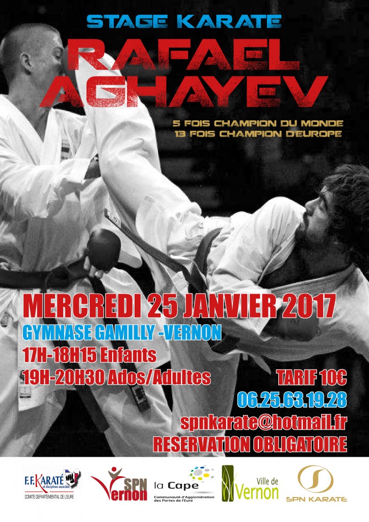 Le SPN Karaté organise un stage de karaté avec sa plus grande star mondiale, Rafael Aghayev : cinq fois champion du monde et 14 fois champion d’Europe. Ce stage a lieu mercredi 25 janvier à partir de 17h au gymnase de Gamilly. Plusieurs internationaux sont également attendus pour ce stage unique en France.