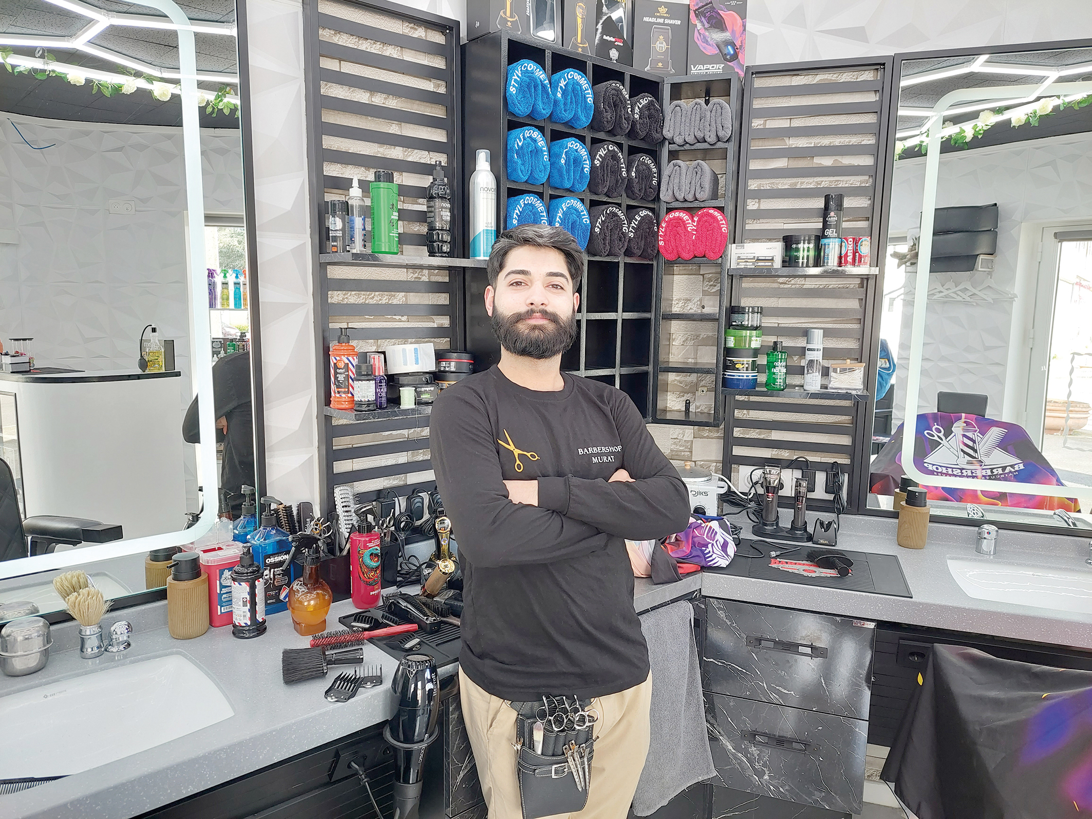 Avoir son propre salon de coiffure/barber est « un rêve qui se réalise » pour Murat Demirci. Le jeune homme n’a que 21 ans, mais il manie les ciseaux depuis qu’il est tout petit. « Mon grand-père et mon père ont travaillé dans un salon de coiffure, c’est un métier de famille ! J’ai toujours aimé ça », confie-t-il dans sa boutique, 20 rue Jules Soret. Pour les habitants de Vernonnet, plus besoin de traverser la Seine ! Ouvert depuis février, Murat a déjà « beaucoup de clients habitués », dont certains viennent de Gasny ou Bois-Jérôme. Coupe de cheveux, permanente, lissage, coloration, taille de la barbe, et même épilation ou soin du visage : « on fait tout », sourit Murat, qui travaille seul pour le moment, mais espère recruter quelqu’un pour l’épauler. Le salon est ouvert de 9h à 19h du lundi au samedi, mais aussi le dimanche matin. « J’ai l’habitude, je ne suis pas fatigué, assure-t-il. Quand je suis au salon, je me sens bien. Être au contact des gens, voir qu’ils sont heureux, c’est ce qui me plaît. »