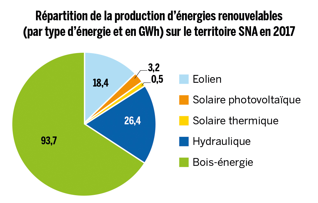 Répartition de la production d'énergies renouvelables sur le territoire de SNA en 2017