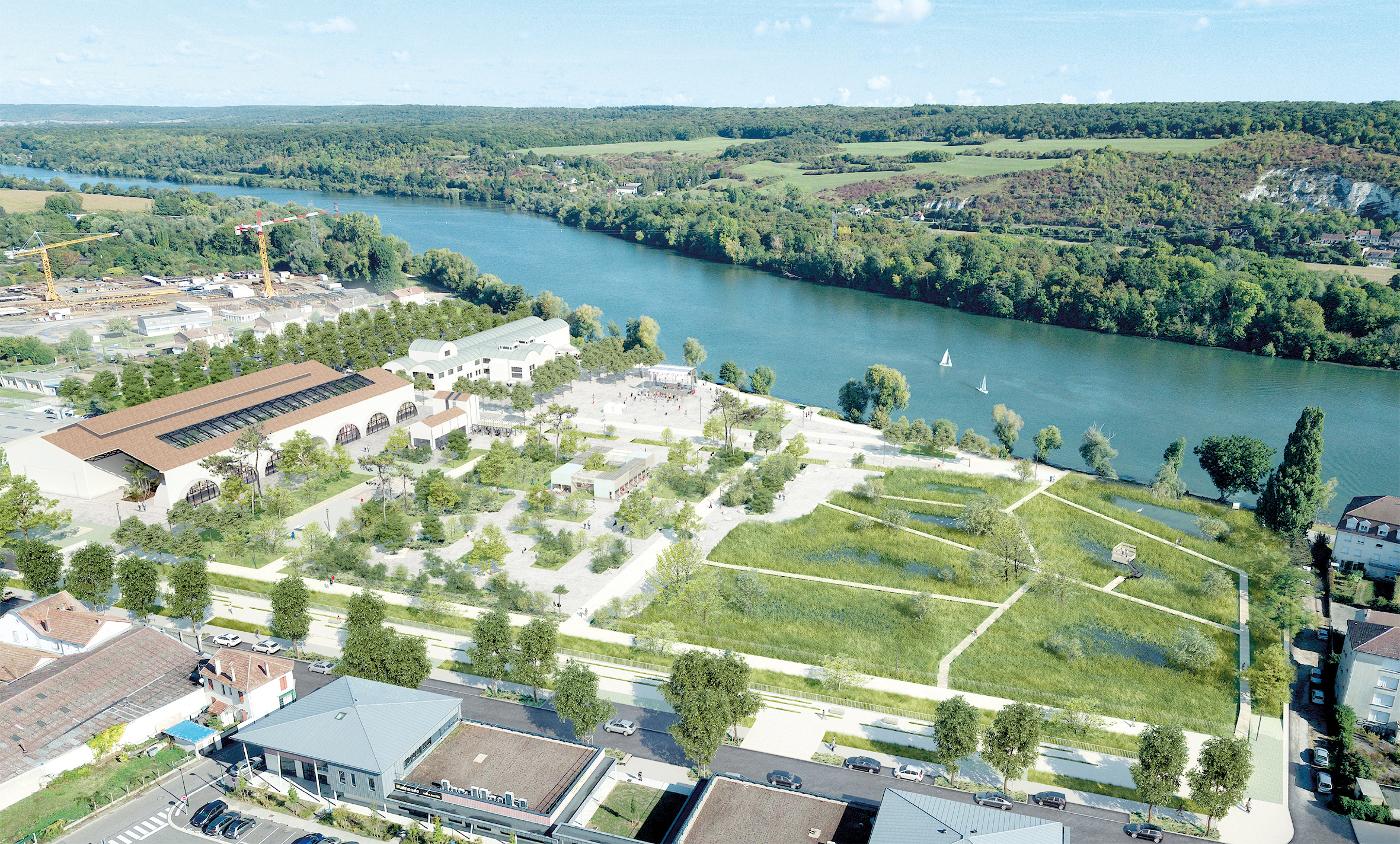 Située le long du fleuve, la friche industrielle de la Fonderie-Papeterie a survécu 15 ans sans aucun projet de la part des équipes municipales précédentes. Le site s’apprête aujourd’hui à revivre avec la création d’un parc de 17 000 m² conformément à l’engagement n°63 de Vernon mérite mieux. Après une dépollution en début de mandat, les futures plantes permettront de purifier le sol et de préserver l’écosystème des berges de Seine. Divisé en deux jardins, l’un sec, l’autre humide, le parc permettra également de limiter les crues de la Seine. A l’intérieur, les anciens bâtiments des friches abriteront des commerces et le nouveau cinéma multiplex.